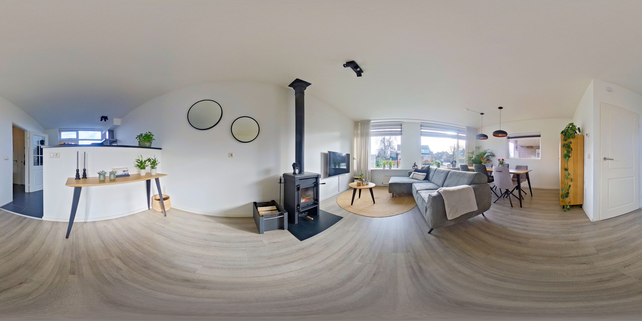 - Lichte woonkamer met houtkachel