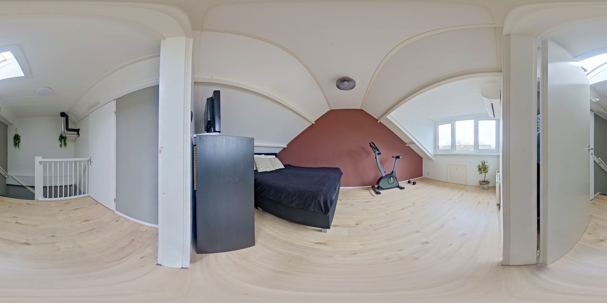 Dan de zolderkamer, wie wil hier nu niet slapen? In 2025 is een kunststof dakkapel geplaatst waardoor de ruimte licht en ruim is. Dankzij het triple glas en de airco is dit een comfortabele extra slaapkamer, werkruimte of hobbykamer.