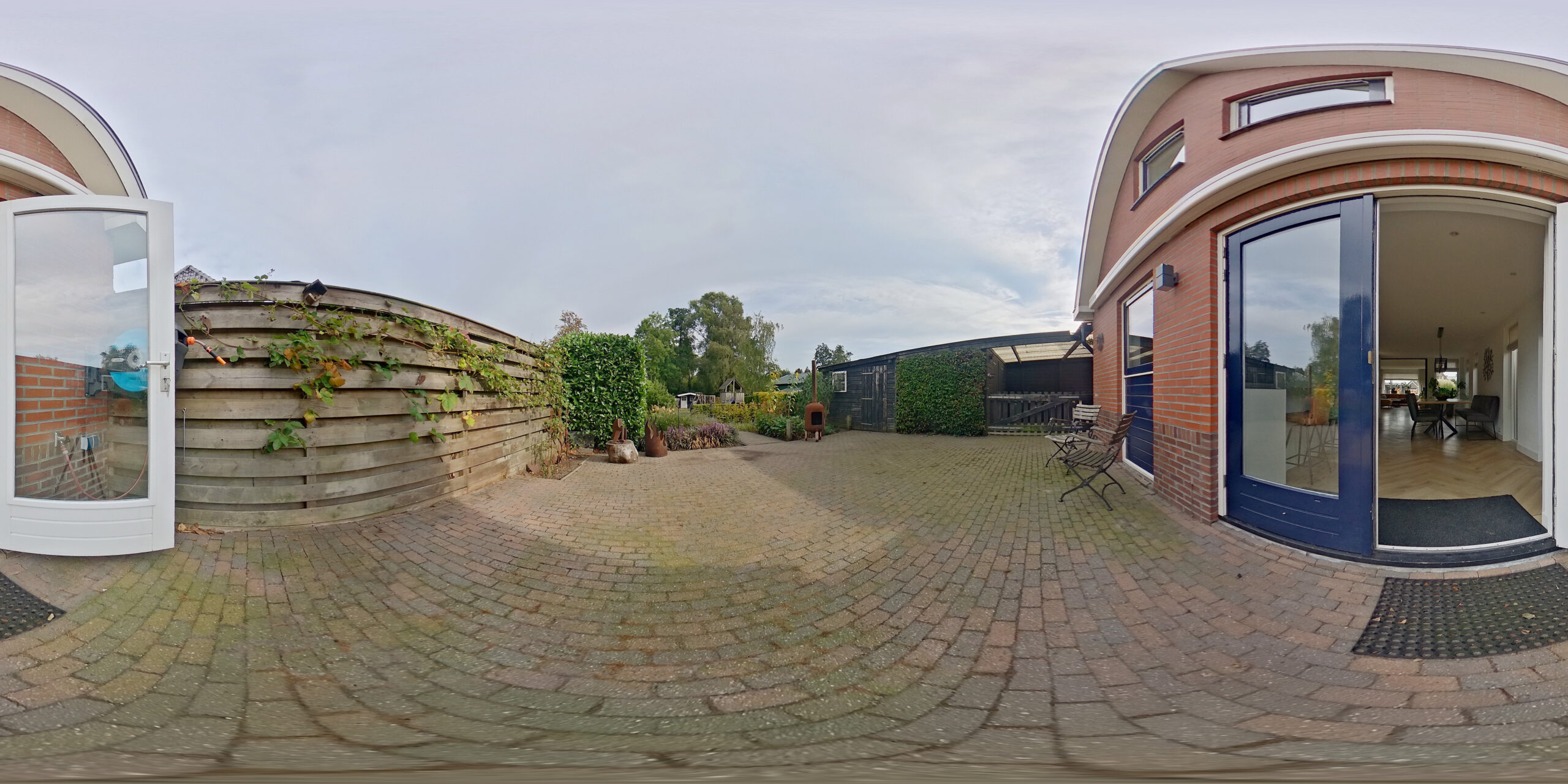 Hier leef je buiten! De achtertuin is uitzonderlijk diep en gevarieerd, met meerdere zithoeken voor zon en schaduw. Aan de gevel zorgt een zonnescherm voor koelte tijdens warme dagen. Verder is een deel van de tuin voorzien van beregening. Er is een groot speelveld achter in de tuin met trampoline en een kippenhok, en aan de zijkant vind je een ruime houten garage met overkapping, ideaal voor hobby, opslag of droog parkeren. De brede oprit op eigen terrein biedt plaats voor meerdere auto’s.