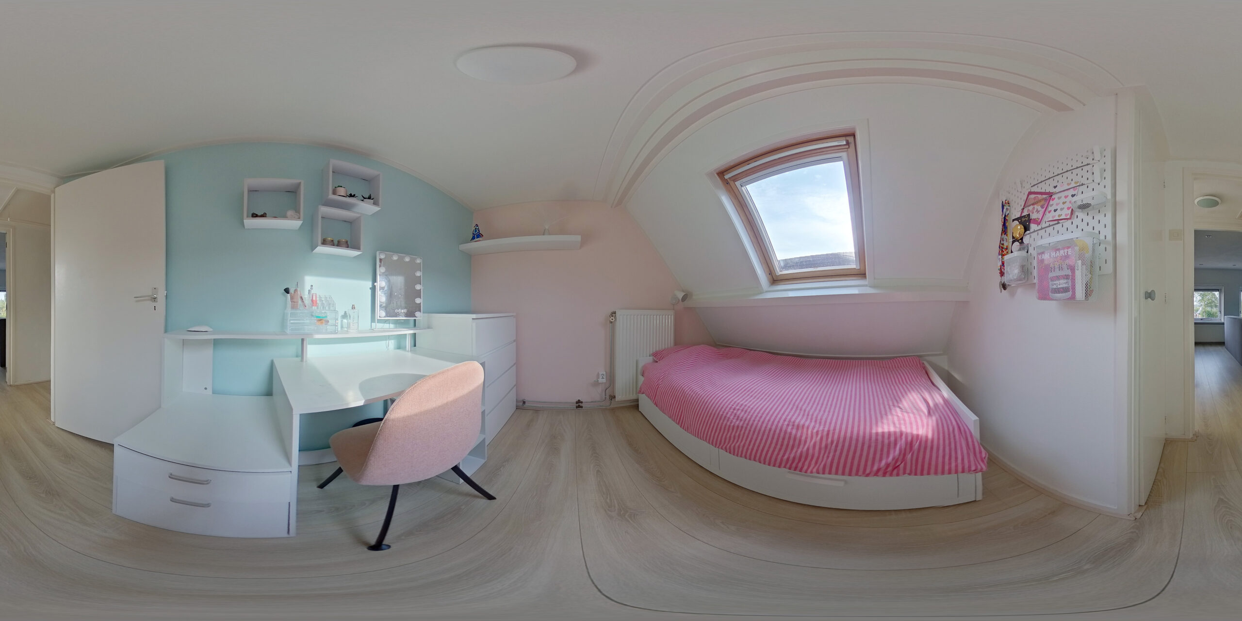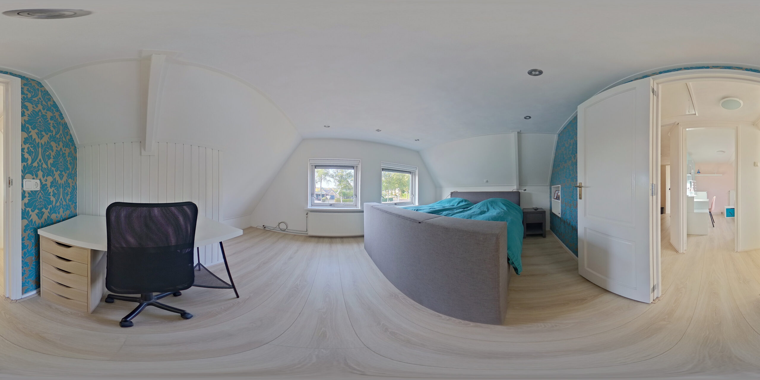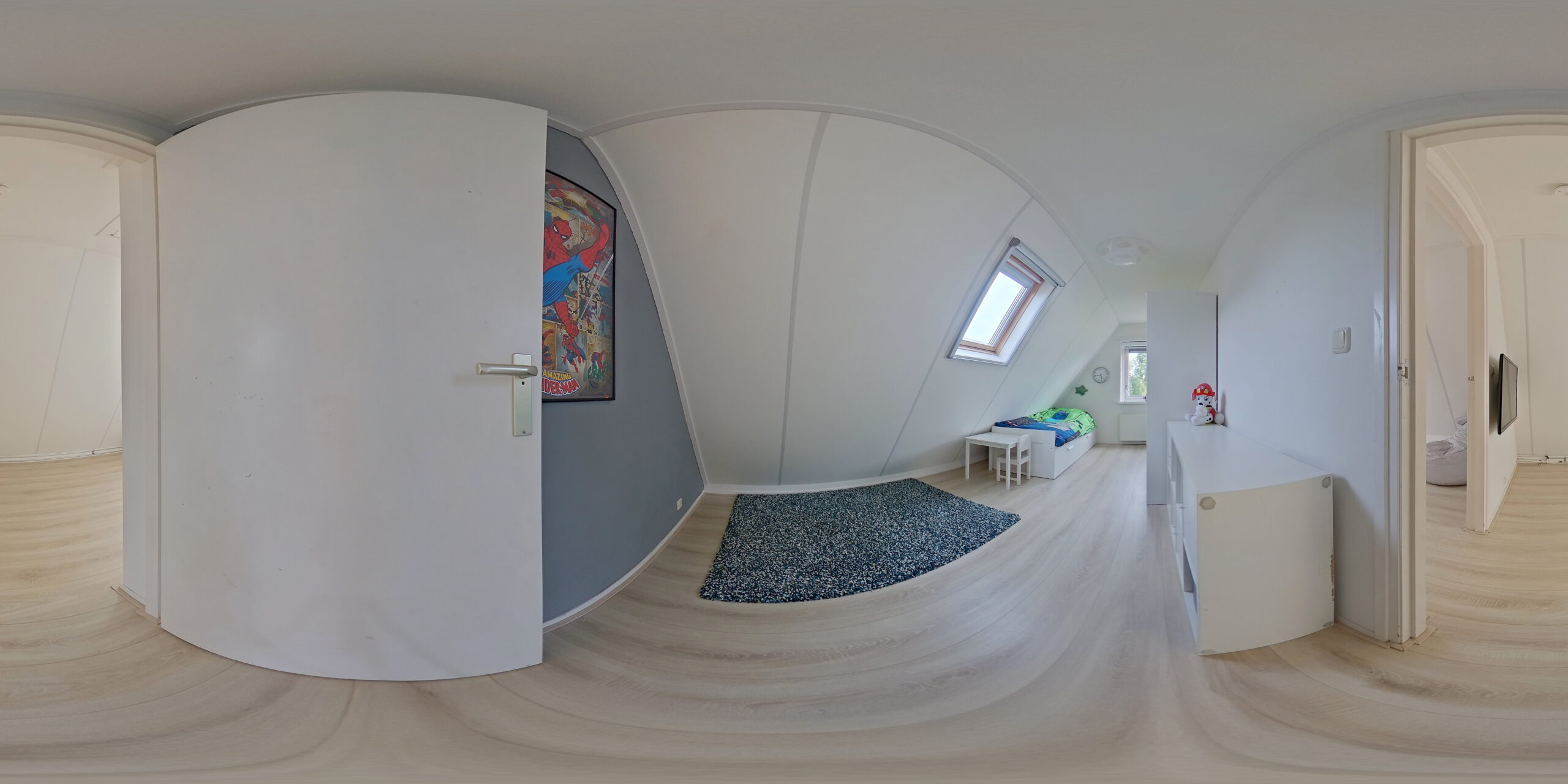De verdieping is verrassend praktisch. Een lange overloop biedt riante kastruimte en aansluitingen voor wasmachine en droger, met genoeg plek over voor een speelhoek of je fitnessapparatuur. Vier slaapkamers maken het gezin compleet: drie fijne kinderkamers en een royale hoofdslaapkamer met precies de rust die je zoekt.