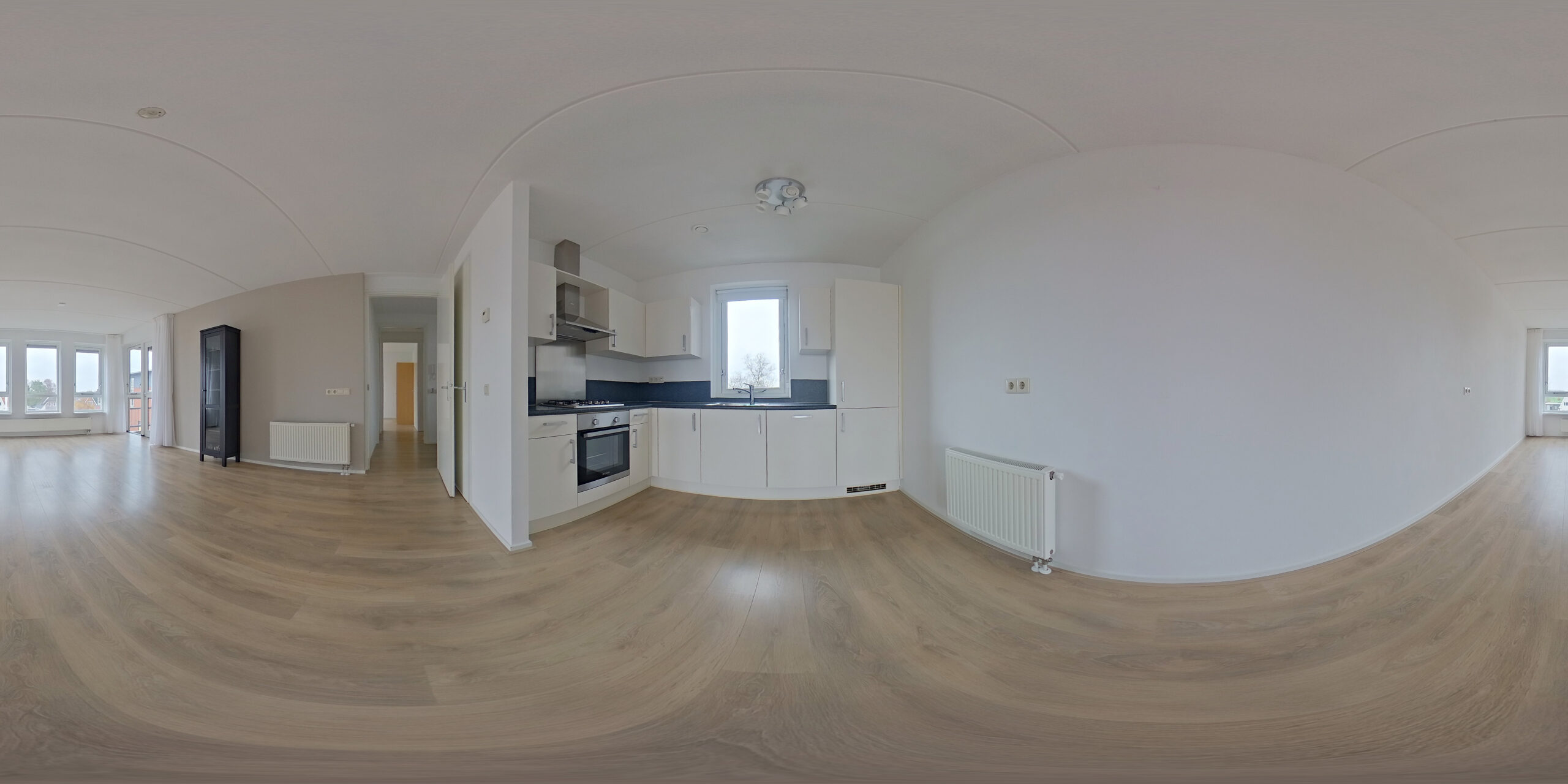 De entree van het appartement opent in een ruime hal met meterkast en toilet. Vanuit hier wandel je door naar de lichte woonkamer met open keuken. De grote raampartijen zorgen voor een fijne lichtinval en geven de woonkamer een open en vriendelijke sfeer. De keuken is compleet uitgerust, verzorgd en praktisch ingedeeld.