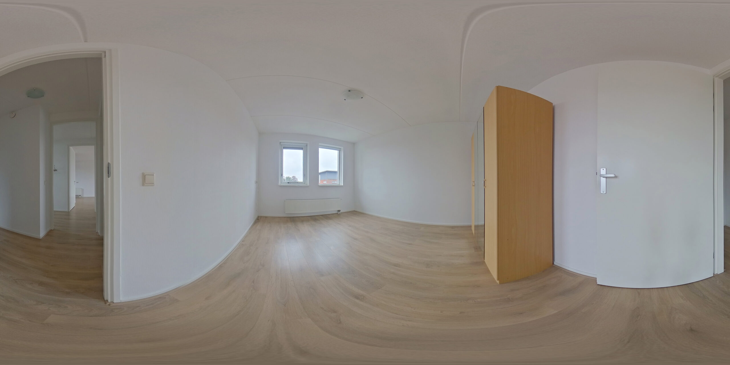 Het appartement beschikt verder over twee slaapkamers: een ruime ouderslaapkamer en een tweede kamer die ideaal is als logeerkamer, kantoor of hobbyruimte. De badkamer is royaal uitgevoerd en voorzien van een douche, wastafel en de aansluitingen voor het witgoed.