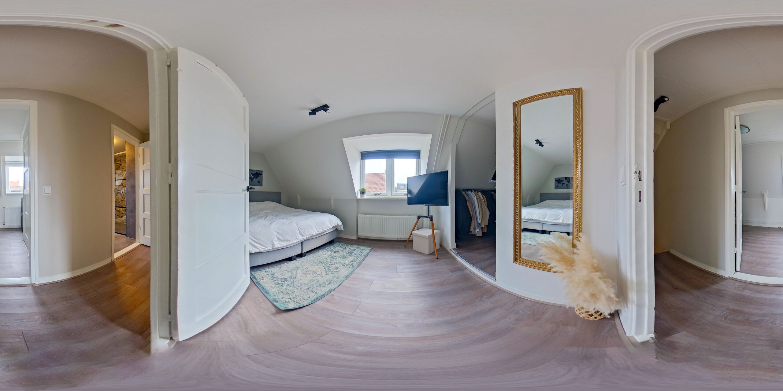 De overloop biedt toegang tot het aparte toilet en twee ruime slaapkamers, beide voorzien van een dakkapel, waardoor de kamers licht en ruim aanvoelen. Daarnaast bevindt zich op deze verdieping de moderne badkamer, uitgerust met een inloopdouche met regendouche en een strak afgewerkte dubbele wastafel.