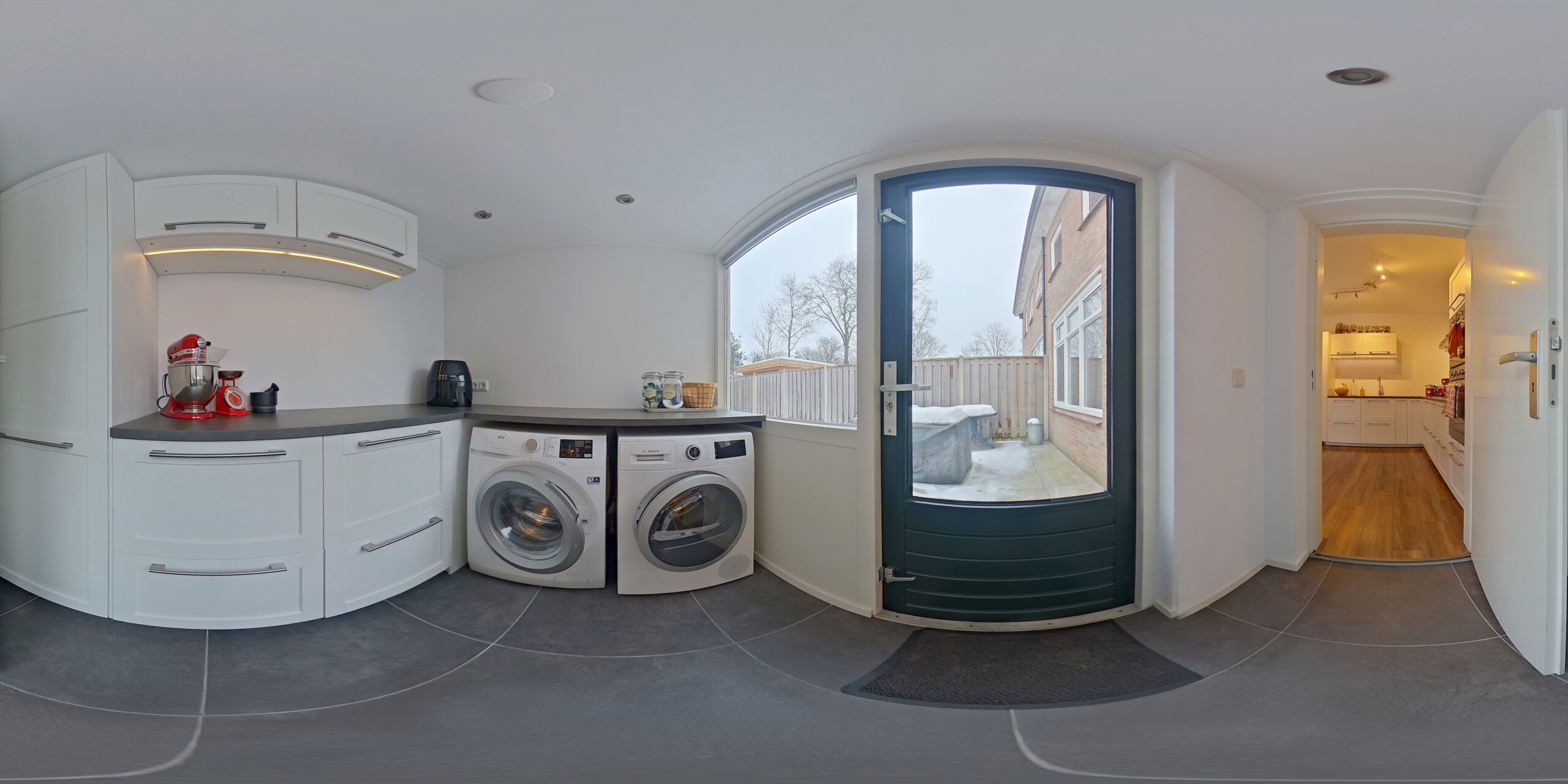 - Ruime bijkeuken met wasmachineaansluiting