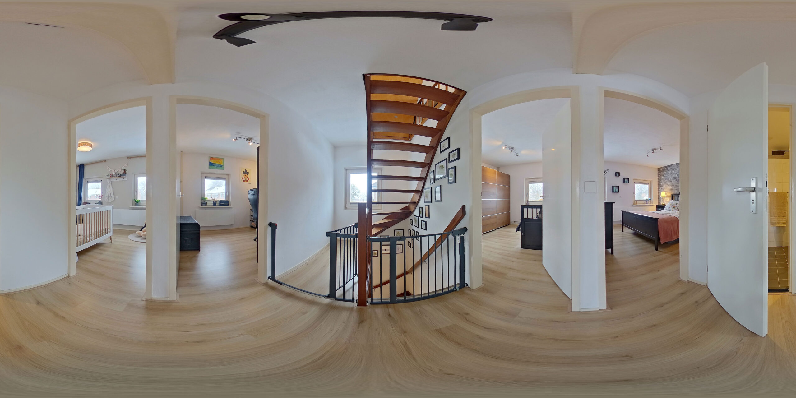De eerste verdieping biedt een ruime overloop met maar liefst vier comfortabel en mooi afgewerkte slaapkamers. De moderne badkamer beschikt over een ruime douche en een wastafelmeubel.