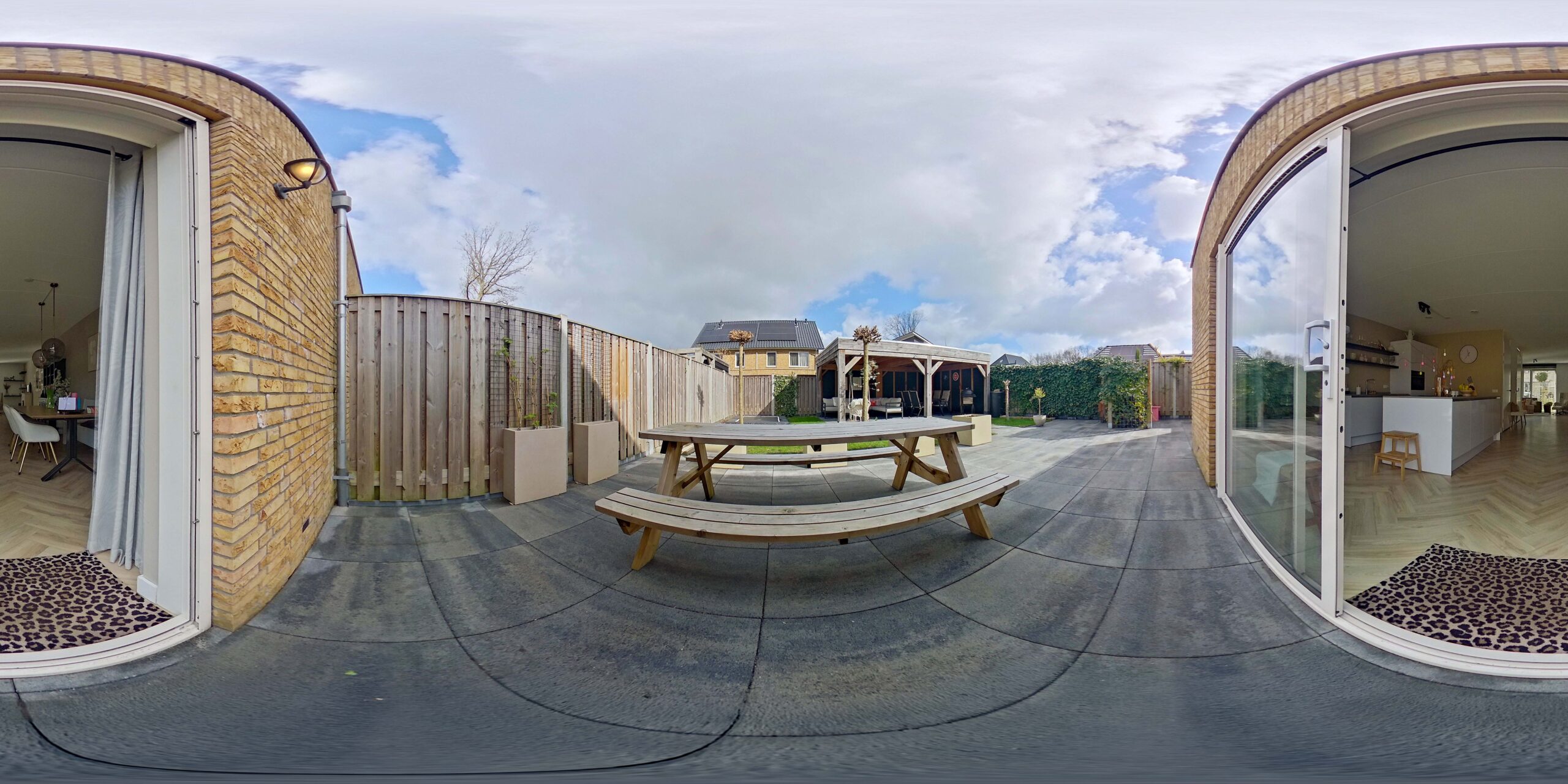 De ligging van de achtertuin (noorden) zorgt ervoor dat je volop kan genieten van. de ochtend en avond zon. Naar binnen als het regent? Dat is niet nodig dankzij de sfeervolle overkapping. Aan de zijkant van de woning kan je eenvoudig van de achtertuin naar de oprit.