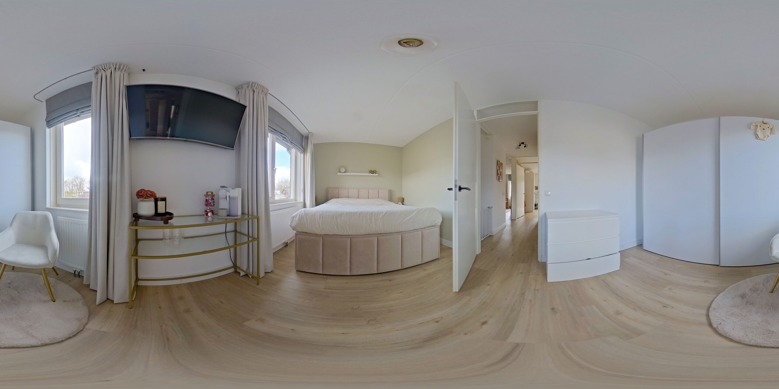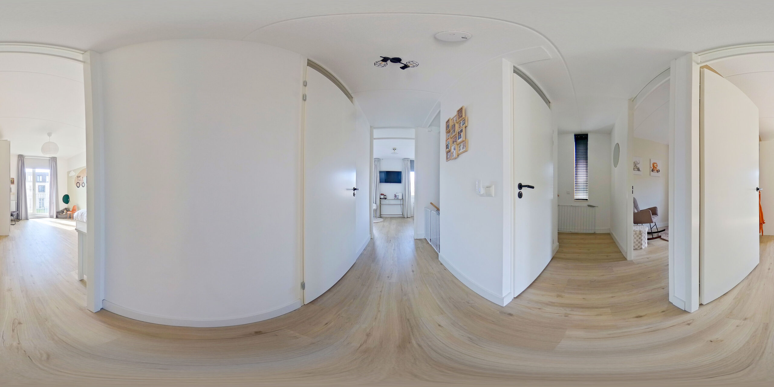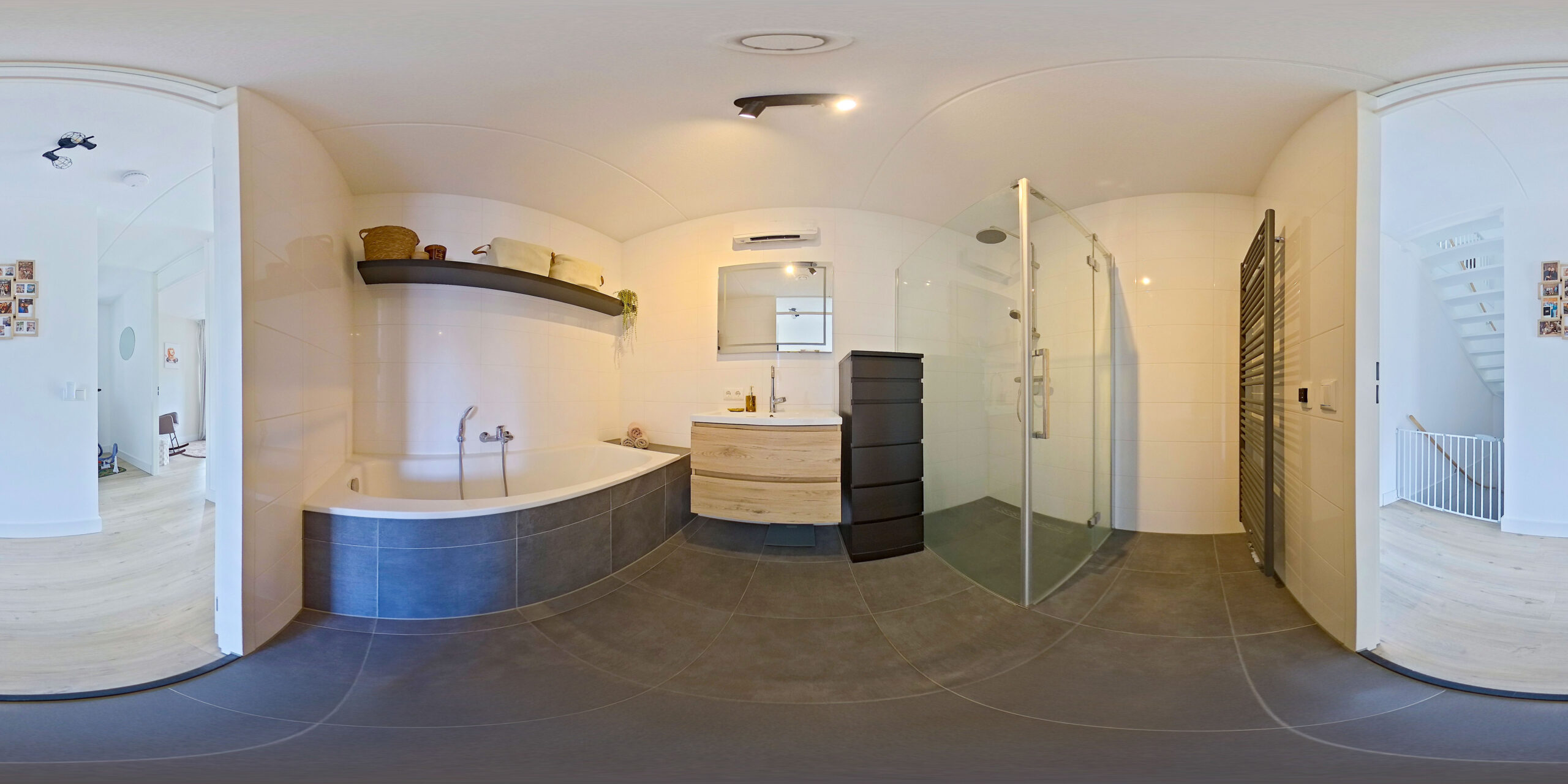 De overloop geeft toegang tot de drie ruime slaapkamers (ca. 16, 14 en 10 m2), de moderne badkamer welke is voorzien van een ligbad, inloop regendouche en wastafelmeubel en het separaat toilet.